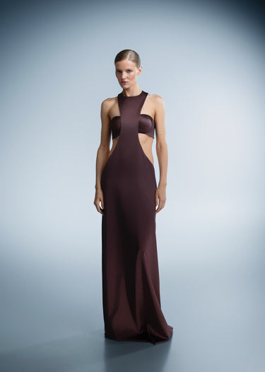The Amber Dress is a true ode to femininity, designed for women who want to combine elegance and modern sensuality. Crafted from luxurious satin in a deep amber shade, this gown features an integrated bustier top that shapes and highlights the figure. The side cut-outs create a sculptural silhouette, while the floor-length design adds drama and sophistication.